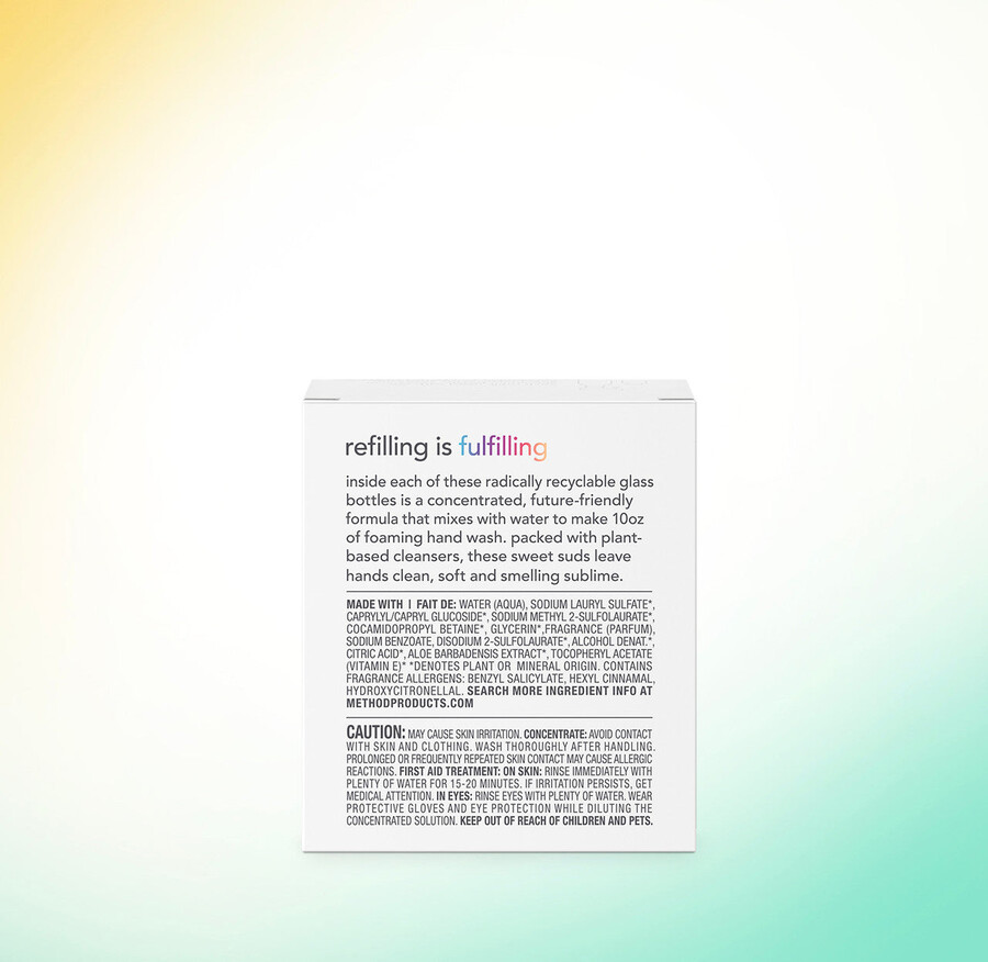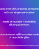 • použití koncentrovaných náplní Method + hliníkové lahve ušetří více než 96 % plastu ve srovnání s našimi jednorázovými plastovými lahvemi.
