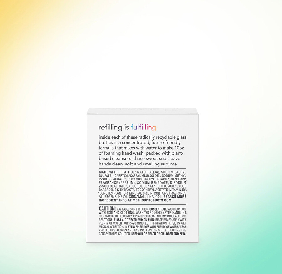 - použití koncentrovaných náplní Method + hliníkové lahve ušetří více než 96 % plastu ve srovnání s našimi jednorázovými plastovými lahvemi.