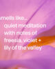 Tichá meditace má vůni frézie, fialky a konvalinky a voní jako hledání rovnováhy v životě. Navrženo pro vás s ohledem na dobrou karmu.