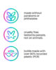 - Tato lahvička už měla svůj minulý život. Lahvička (bez víčka) vyrobena z 86 % recyklovaného plastu (PCR).