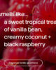 - Vůně s tóny vanilky, kokosu a černé maliny